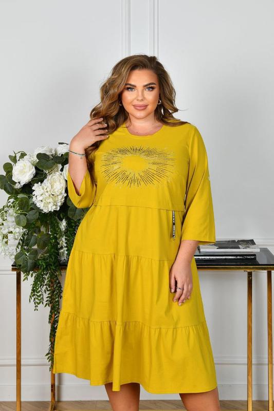 Тканина: Турецький бенгалін, стрейч ✅ Розміри:48,50, 52, 54, 56, 58 Кольори: гірчиця, фісташка, джинс, бірюза 52р - об грудей 108см, дліна 112см 54р - об грудей 112см, дліна 112см 56р - об грудей 116см, дліна 115см 58р - об грудей 122см, дліна 115см cl