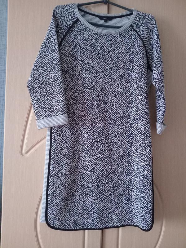 Тепленькое оригинальное платье Next, прямого кроя, трикотаж, рукав 4/5, новое, S/M