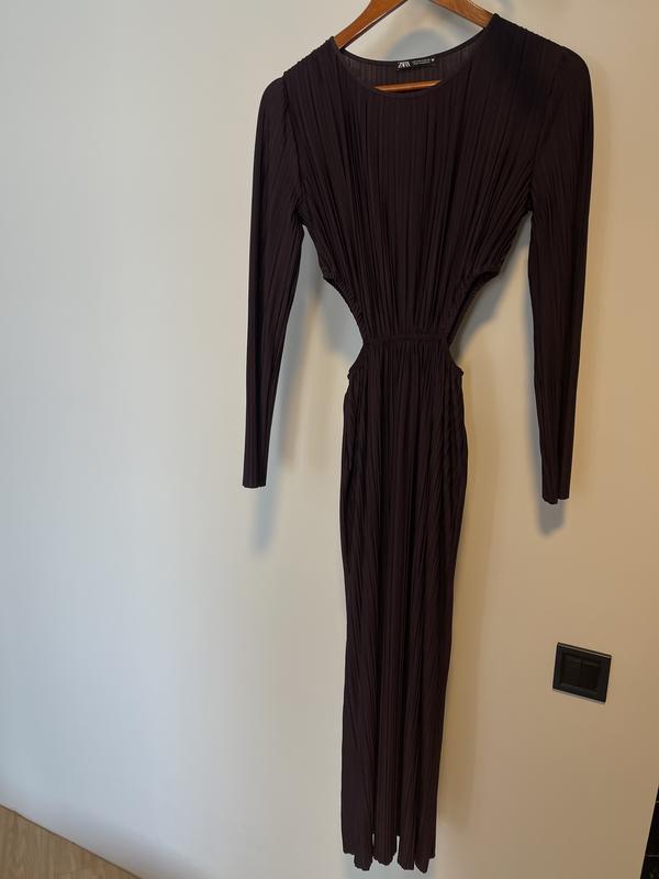 Сукня Zara з вирізами Ця сукня - про впевненість, жіночність і красиві акценти на фігурі. Глибокий баклажановий колір виглядає дорого, благородно і водночас дуже виразно. Він м’якший за чорний, але не менш ефектний - підкреслює шкіру, додає глибини образу і завжди привертає увагу. Вирізи на талії працюють як стилістична магія. Вони формують силует, підкреслюють вигини і створюють красиву, жіночну лінію фігури. Саме ті деталі, які роблять образ цікавим і сучасним. Ця сукня не потребує складних стилізацій -вона вже виглядає завершеною. Достатньо додати улюблені прикраси і взуття, і образ готовий.