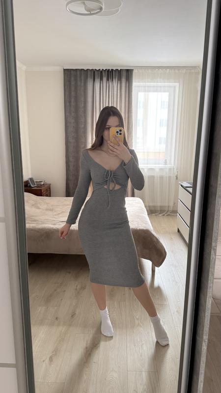 Сукня в рубчик, тягнеться помірно, має красивий виріз, завʼязки, вона - 💔 Заміри, питання, додаткові фото – чекаю на вас в дірект☕️🫶🏻