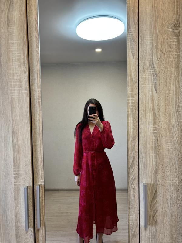 Сукня рожево-червоного кольору На поясі затягується шнурком Розмір xs