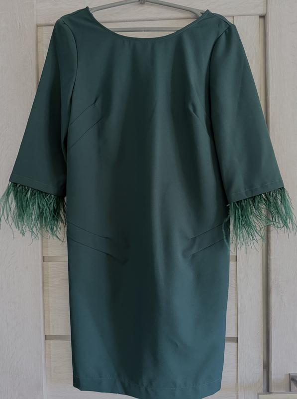 Сукня розміру s Рукав 3/4 довжина 40 Напів обхват грудей 42 Приталена 70 по застібку на спині ( на молнії) Пірʼячко можна зняти для прання