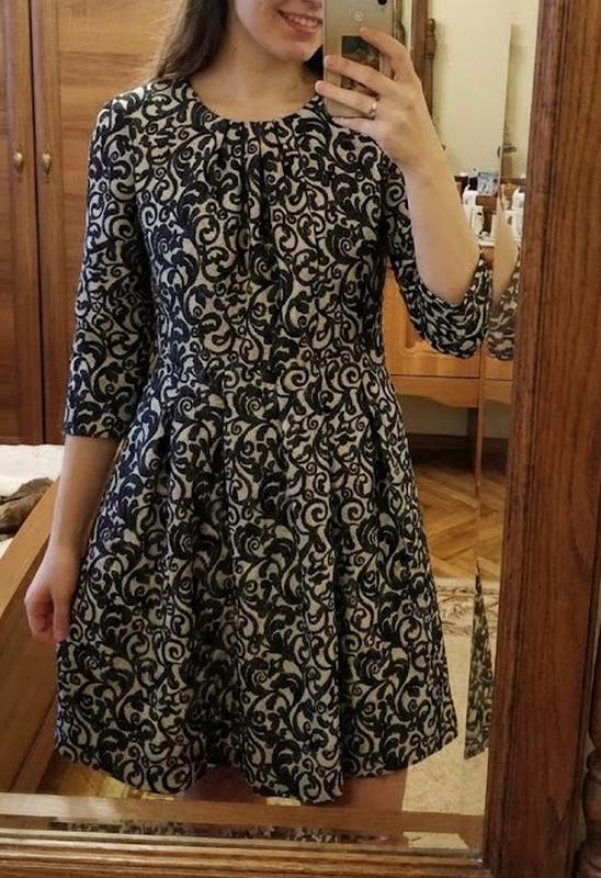 Синее платье с принтом, подчеркивает талию. Ткань с люриксовой нитью.