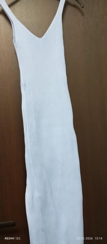 платье в рубчик, на тонких бретелях,V образное декольте,на ноге высокий разрез позволяет красиво и элегантно двигаться,размер M S,голубого цвета