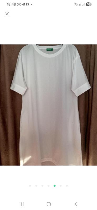 Минималистичное белоснежное платье из хрустящего коттона от benetton Свободного фасона, из содержимого ми кармашком по бокам 💯хлопок Рукавчик свободный, прямой размер М, но отлично будет и на С Внеду чуточку идет длиннее Длина 99/104 Пог 57 Рукав от плеча 40 Нова 💕