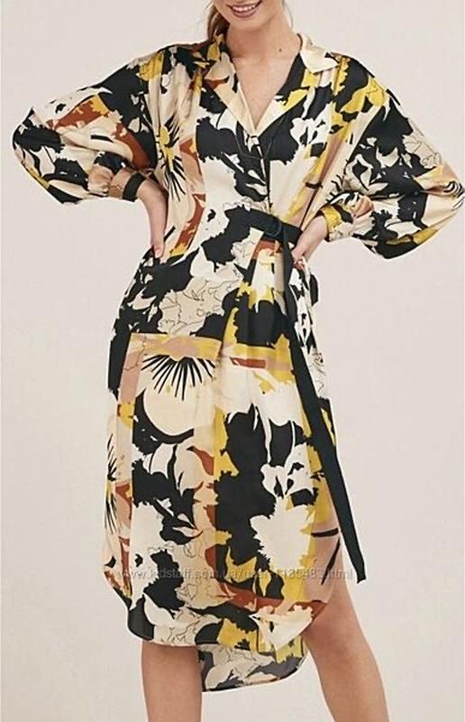 Стильна легка гарна сукня.Розмір вказаний евро 36.Підійде на S-M. Внизу по бокам не великі розрізи для комфорту , низ заокруглений .Гарний широкий рукав, талія регулюється поясом. ПОГ-47-49 ПОТ-50 ( можна збільшити, або зменшити) ПОБ-55 Довжина спереду-112, сзаду 121лкгка сукня