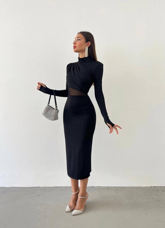 ☑️Ткань: микро дайвинг ☑️Размеры: 42-44; 46-48 ☑️Цвета: черный Невероятно нежное и безупречное платье 🥰 которая подойдет на любое событие❤️ RN1558 мод314