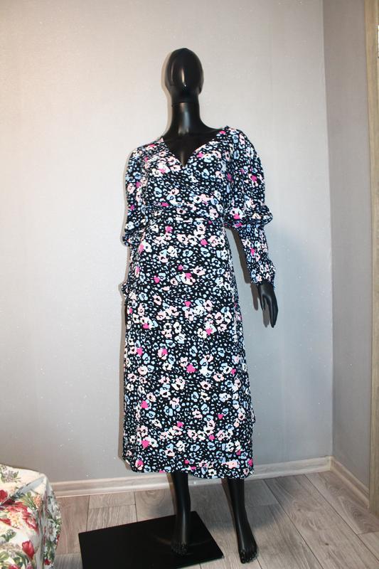 размер указан 18, 100% полиэстер довжина 125 см. ПОГ 62 см. ПОТ 50 см. ПОС 68 см. йде на запах \\\\7\\\