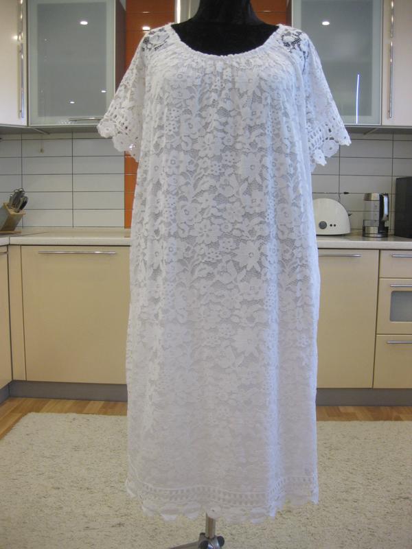 Білосніжна італійська сукня, оверсайз, мереживо !!! Має натуральну тоненьку віскозну підкладку. Заміри : довжина 113см, ПОГ 76см, ПОБ 76см. Нова, без етикетки !!!