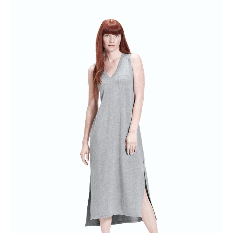 Довга сіра трикотажна сукня від UGG з розмірами по бокам. Є кишеня нагрудна. Розмір S Класний склад - бавовна і модал