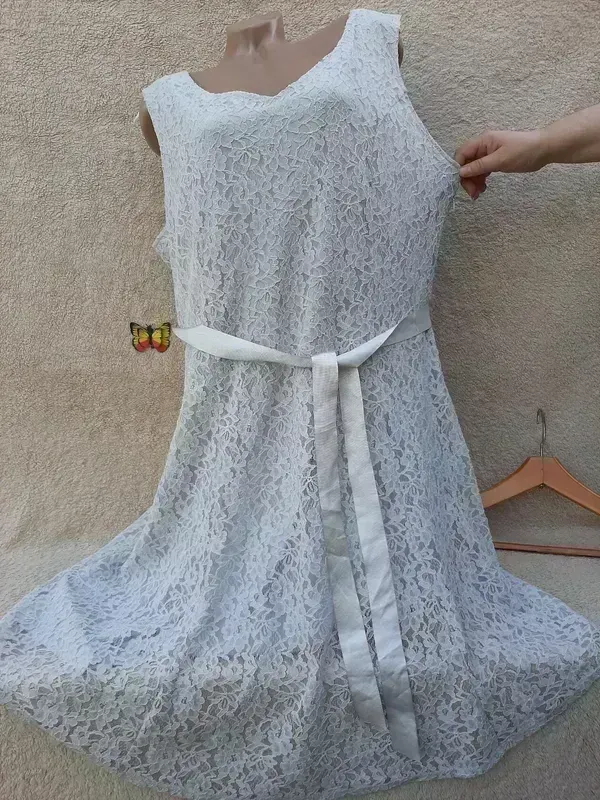 Нарядное светло-серое гипюровое платье с пояском, подкладка, становление идеал ПО груди 64-66,ПО бедра 64-65, длина 106 Замеры повсюду половина