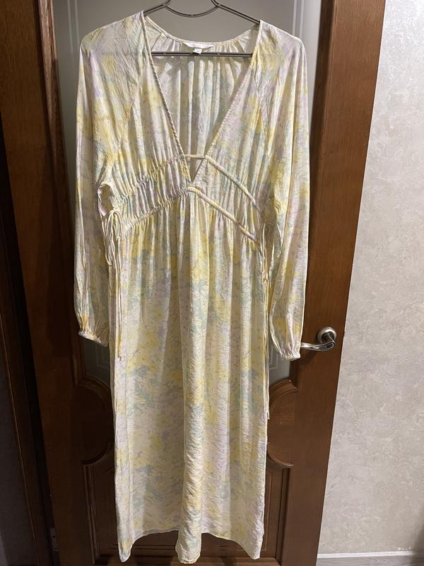Рукави буфи від горловини 74см Довжина 135см ПОГрудей 50см ( можна регулювати шнурівкою) ПОБедер 68см Легка , ніжна , приємна до тіла В квітковий ніжний принт