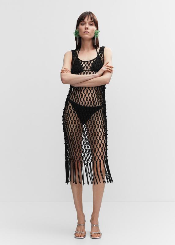 Нова пляжна сукня Mango, преміум якості 100% бавовняна тканина. Прямий дизайн. Міді-дизайн. Заокруглений комір. Широкі бретелі. Бахрома. Незастібка. на сайті ціна 130 дол.