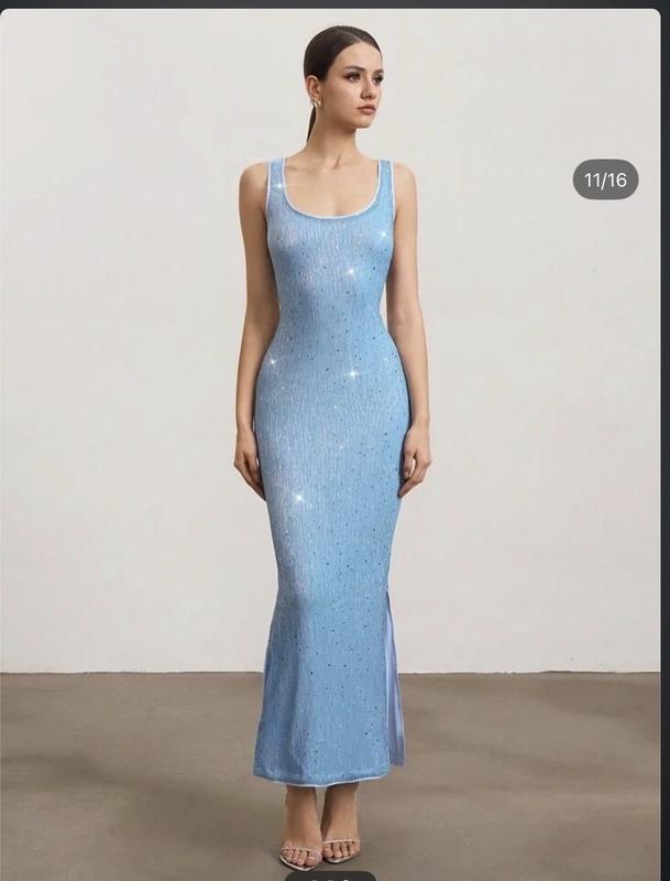 блакитна сукня з блискітками розмір М напівобхват: груди-42см(потягнеться до 50см) талія-38см стегна-45см(потягнеться до 52см) довжина сукні-135см