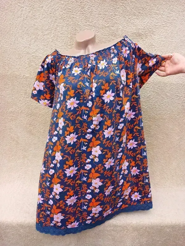 Интересное трикотажное платье туника, хлопок, можно носить обычно, а можно на плечиках, наличие новой вещи ПО резинка по плечам 54-65, ПО груди 62-66, ПО бедра 70-75, длина 90 Замеры отличий половина
