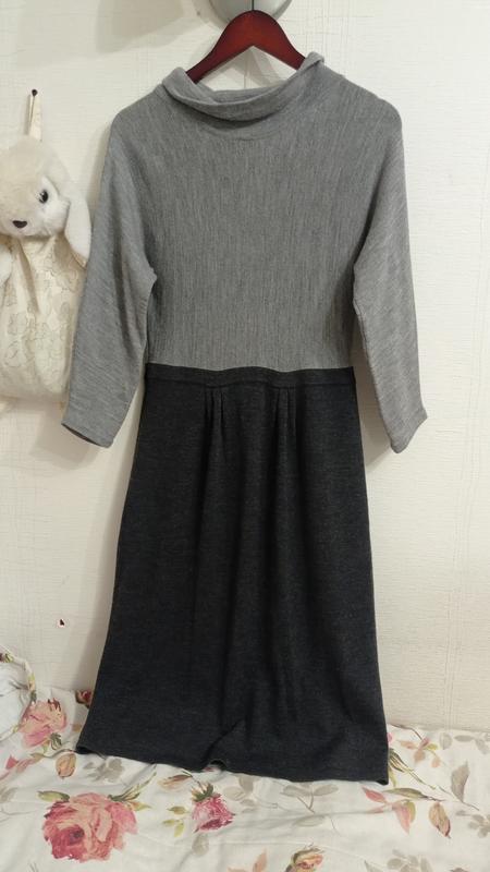 Стильное и уютное платье от премиального британского бренда Boden. Выполнена в лаконичном дизайне color-block: сочетание светло-серого верха и темно-графитовой юбки. Идеальный вариант для офиса, деловых встреч или комфортного повседневного образа в холодное время года. Основные характеристики: Бренд: Boden (оригинал, артикул WH403). Состав: 100% шерсть (Wool/Laine). Материал очень мягкий, не кусается, отлично держит тепло и позволяет коже "дышать". Размер: UK 14R / US 10R (идет на наш L / 48, возможно, на плотный M). Фасон: * Приталенный силуэт с мягкими складками на юбке, красиво подчеркивающими фигуру. Элегантный воротник стойка (roll neck / гольф). Рукав 3/4 или полный (в зависимости от роста). Цвет: Градиент серого (светло-серый меланж и антрацит). Состояние: отличный (без катышков, зацепок или посторонних запахов).