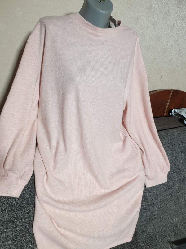красивое, теплое платье батального размера. на наш 52/54. красивый пудровый цвет, прямой крой, красиво тянется. Пог 63 плечо 18 рукав58 поб 63 длина 102.