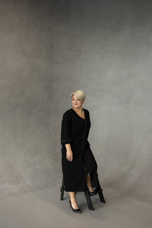 🌱Сукня🌷 Модель: 313 ❤️Размер: 52-54, 56-58, 60-62, 64-66 ❤️Цвет: черный Ткань: крепдайвинг Элегантное, лаконичное платье, ткань тянется. Идеальный вариант, как на каждый день, так и на праздник. Тонкая полоска из впаянных камней на ленте, вытягивает силуэт. Прямой крой, V- образный вырез горловины, рукав 3/4. Платье, которое станет самой любимой в гардеробе. ❤️Замеры:❤️ ❤️52-54 Обхват грудей: 112 см Обхват стегон: 120 см Длина рукава: 33 см Длина изделия: 115 см ❤️56-58 Обхват груди: 120 см Обхват стегон: 128 см Длина рукава: 33 см Длина изделия: 118 см ❤️60-62 Обхват груди: 128 см Обхват стегон: 136 см Длина рукава: 33 см Длина изделия: 118 см ❤️64-66 Обхват груди: 136 см Обхват стегон: 144 см Длина рукава: 34 см Длина изделия: 122 см