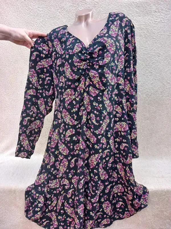 Интересное тонкое платье,вискоза штапель, становление идеал ПО груди 60, ПО талия сзади резинка 50-60, ПО бедра 75, рукав 63, длина 103 Замеры отличия половина