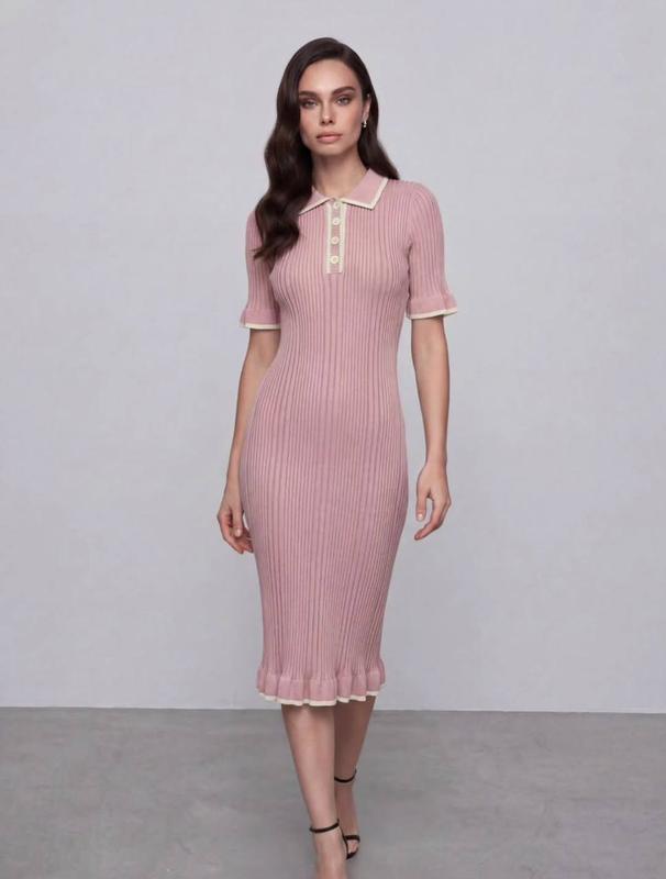 Трикотажное платье миди Приталенный крой красиво садится по фигуре. Воротничок и пуговицы добавляют стильный акцент. Комфортная, эластичная и универсальная — идеальная база на каждый день Производитель: Турция Размер: универсальный (42-46) №4136.2
