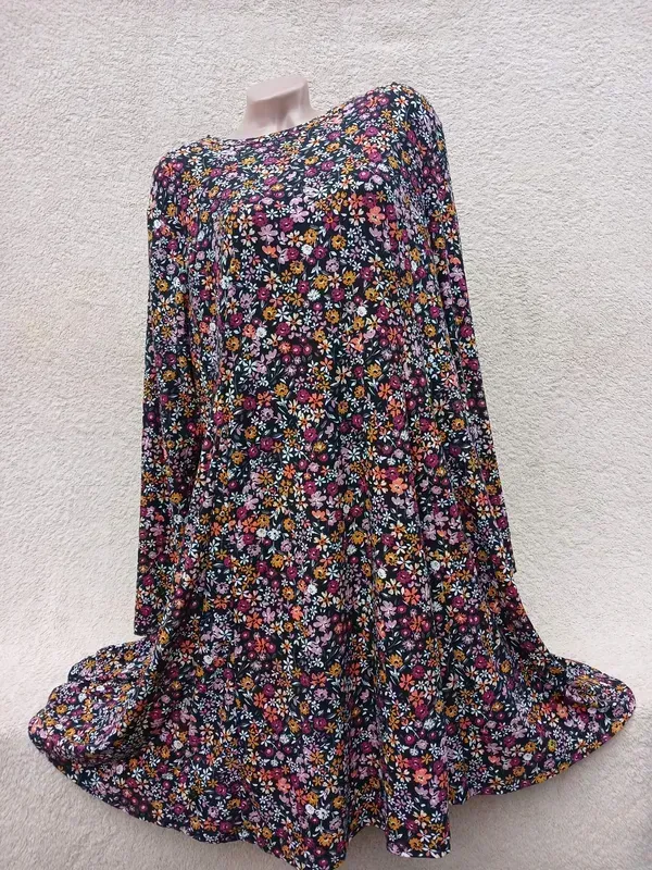 Мягкое трикотажное платье в цветочный принт,фасон трапеция,состояние идеал 💎PRIMARK, UK 22-24, EU 50-52 ♦ПО груди 60-68 ♦ПО бедра 77-87 ♦рукав 63 ♦длина 101 🔊Замeры половина ✅Состояние идеал