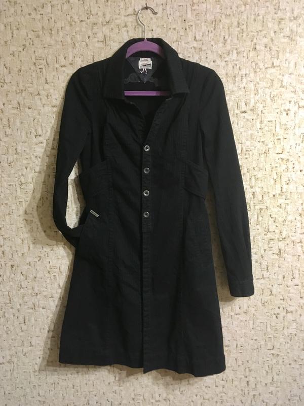 Hilfiger denim Платье из плотного коттона , в составе эластан, немного тянется Спереди застежка на пуговицах, от талии до низа пуговицы скрыты Металлическое лого бренда спереди возле кармана На манжете рукава так же лого th Сзади на спинке вышивка с именем бренда Можно носить как платье, так и как тренч/ кардиган Размер s, не полномерная м Идеальное состояние, как новое Без дефектов, запахов и тп