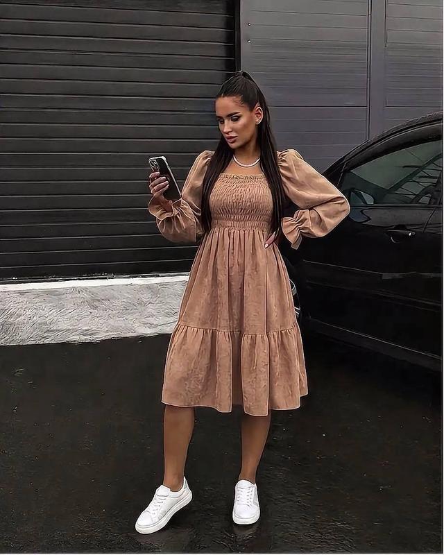 Молодіжна сукня на резинці 🍂 Модель 438 ✨ Вишукана, стильна та неймовірно комфортна. Сукня підкреслює індивідуальність, додає впевненості й створює той самий жіночний настрій із легкою грайливістю. Ідеальний варіант на кожен день та особливі виходи. ⸻ Деталі моделі ▫ Тканина: вельвет х/б ▫ Розмірний ряд: 42–44, 46–48, 50–52 ▫ Кольори:маліна, беж, чорний, шоколад ▫ Ціна: 720 грн ⸻ Розмірна сітка 42–44 • Груди: 80–88 см • Талія: 60–68 см • Рукав: 67 см • Довжина: 89 см 46–48 • Груди: 88–96 см • Талія: 66–74 см • Рукав: 68 см • Довжина: 90 см 50–52 • Груди: 104–110 см • Талія: 74–82 см • Рукав: 70 см • Довжина: 91 см