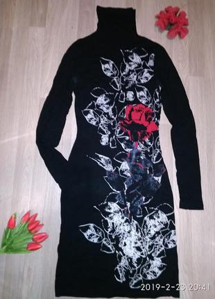 Очень красивое и стильное платье-гольф с ярким рисунком.Размер написан М,но маломерит.Тонкий,качественный трикотаж,не теплое. Замеры: Пог 40 Пот 33 Поб 42 Длина 103