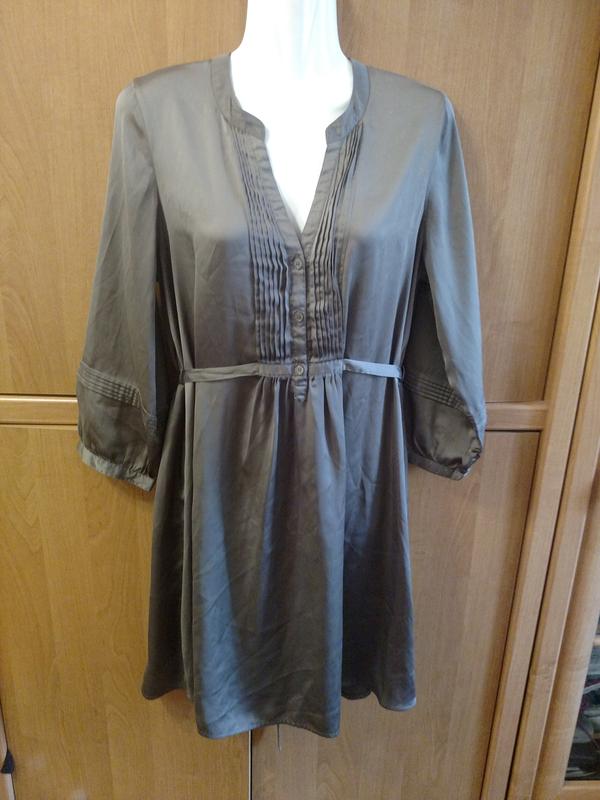 Тонкое,шелковистое платье,красивый коричневооливковый цвет,свободного кроя,под пояс