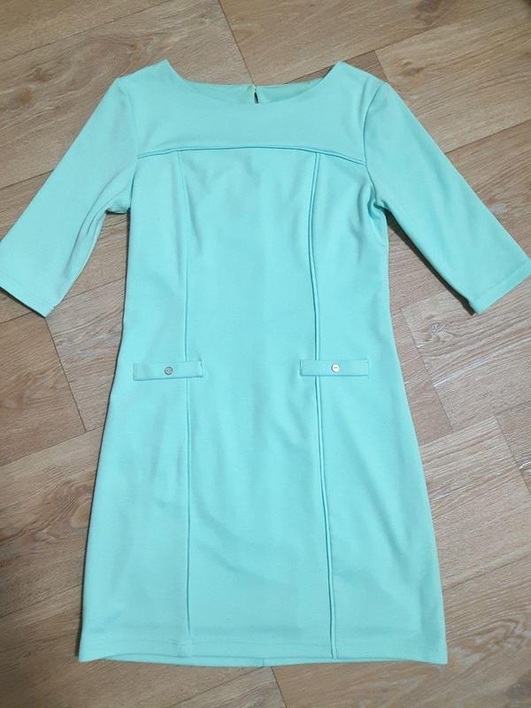 Продаю стильное платье мятного цвета. Состояние на 5-. ОГ 46 см, длина рукава 38 см, ОТ 40 см, длина по спине 87 см. Есть с внутренней стороны незначные покатыши , на постеднем фото видно.
