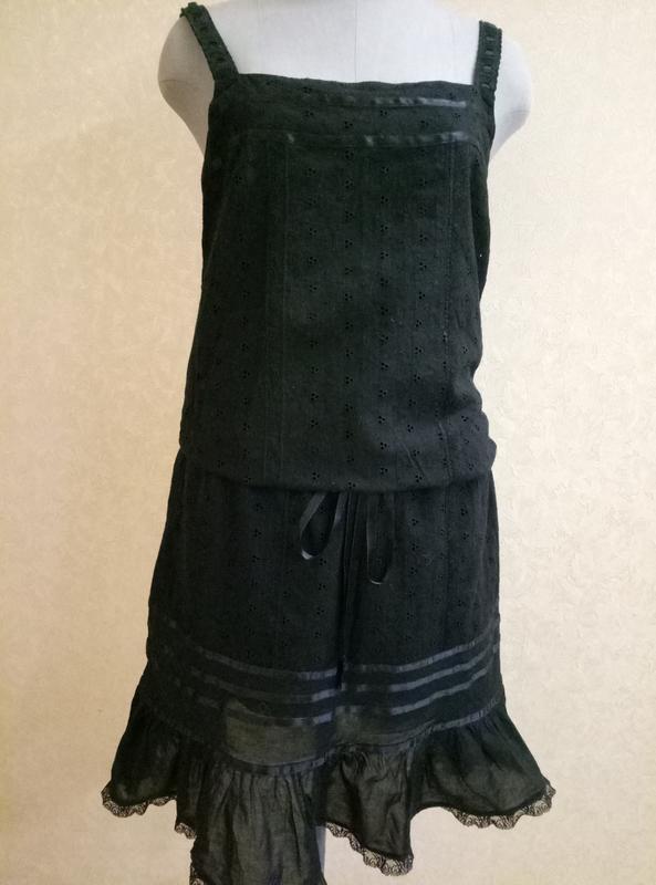 Очень лёгкое, перфорированное, на подкладке. Линию талии можно моделировать(занизить, завысить..) Уточняйте перед покупкой, возврату не подлежит Длина изделия -105(от плеча) Пог-47 Пот-40(тянется, на резинке)