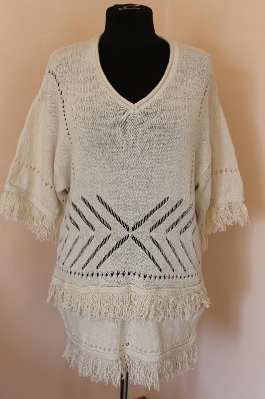 Класна сукня з натуральних ниток прислана з Іспанії, колір айворі, рохзмір С вказано, одягнуто на манекен 52 розміру.Тому я вказую розмір М в оголошенні.Довжина-90см,плечі-79см ( приспущено за рахунок фасону), пог-59см( фасон оверсайз),до низу пряме.