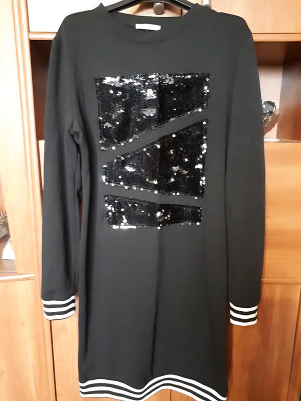 Черное платье с пайетками, новое одевалось пару раз, обмена и возврата нет