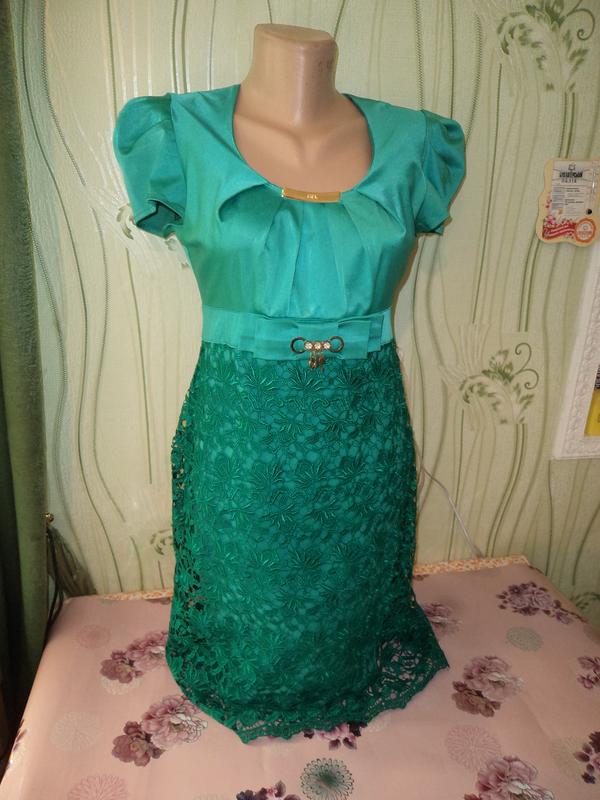Платье бирюзового цвета, очень богато смотрится. Обхват груди 80 см,обхват талии 72 см,длина рукава 17 см длина от подмышки 72 см ,ширина плеча 9 см, 40 размер, в идеальном состоянии, одевала всего 3 раза.