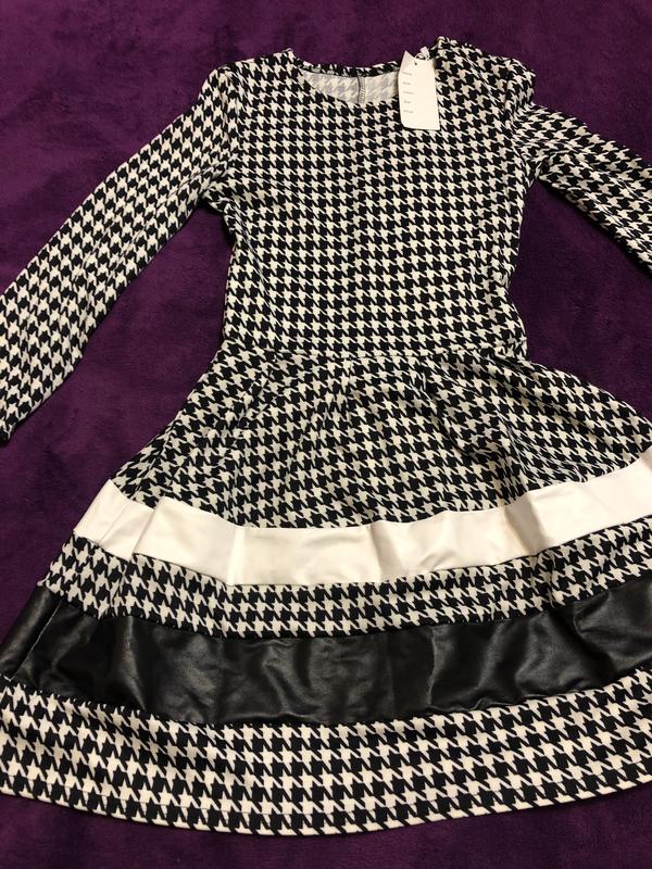 Размер S Длина Меди Ткань трикотаж.длина 80, вставки из эко - кожи. Нове. Рукава 3/4. Модная расцветка гусиная лапка