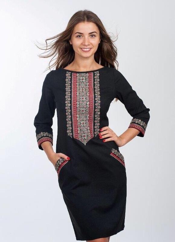 Молодежное платье с вышивкой красными и серыми нитками по ткани. Размеры: 50,52 Материал: 60% полиэстер, 30% вискоза, 10% эластан