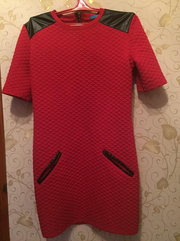 Платье в очень хорошем состоянии, интересного фасона со вставками имитирующими кожу. Размер М. Длина платья 86 см, по плечам 40 см, под руками 48 см, полуобхват талии 43 см, полуобхват бёдер 48 см