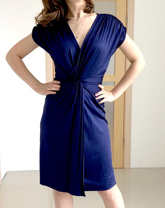 Базовое платье темно синего цвета, отбивает свет что придает нарядность. Внутри на подкладке,сама модель имеет уникальный крой, который подчеркивает достоинства и скрывает недостатки, утягивает животик. Подойдет для офиса, добавив аксессуаров выручит Вас и в праздник. Внешне нюансов нет, на подкладке, оверлок в некоторых местах распустился, на общий вид платья не влияетю