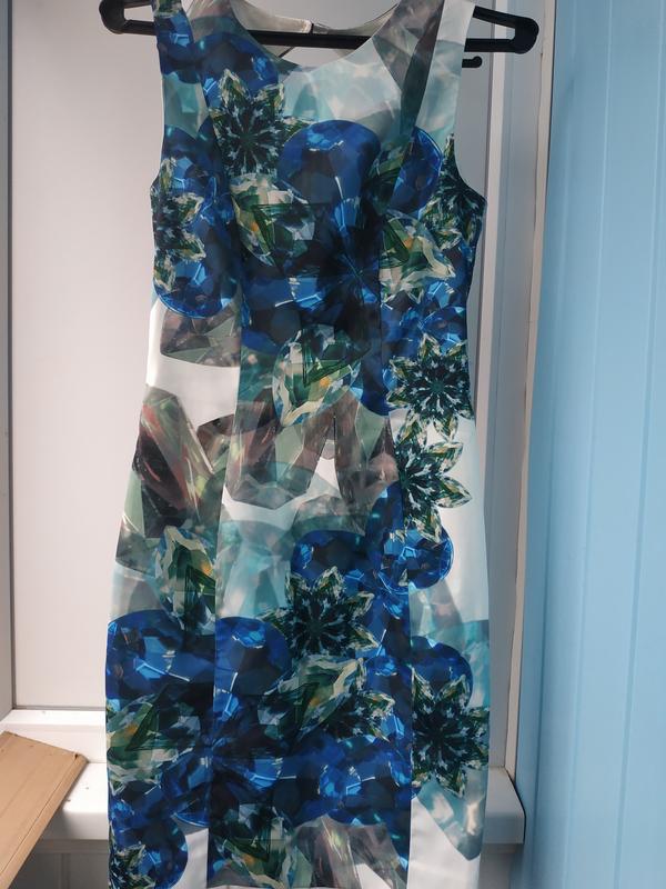 Шикарное нарядное платье по фигуре с принтом, сзади застёгивается на молнию и пуговицу, с подкладкой. Длинна 89см, пог 40см, пот 34см, поб 42см. Фото на теле нет. Без торга.