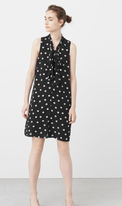 Продам платье Mango в горошек в отличном состоянии. Размер S. Замеры: длина от воротника 97см, плечи 30см, ПОГ 48см, ПОТ 51см, ПОБ 53см, по низу 58см, есть подкладка.