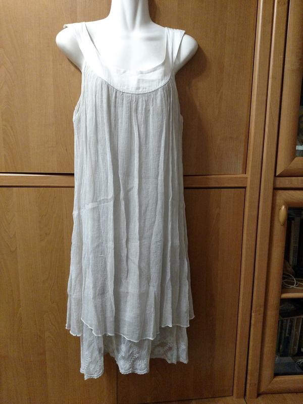 Ніжне плаття шовк,миле,романтичне,повітряне,дуже красиве,колір сірий з додаванням приглушеноно беж.Розмір м,л