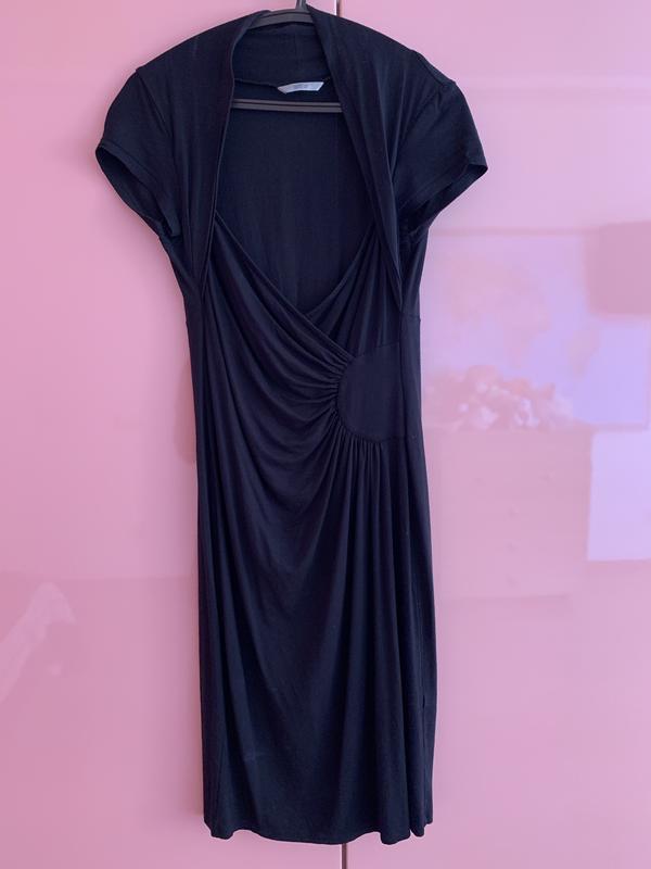 Чорне плаття з дуже красивою посадкою на грудях, розмір М; тягнеться