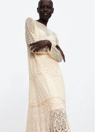 Розкішне мереживне плаття Zara. Розмір вказано S, підійде на S-M. Підійде як для урочистих заходів, так і для повсякденних літніх образів)) Колір off-white або екрю ПОГ 45см (трошки тягнеться)) ПІТ 45см (найщільніше мереживо, майже не тягнеться) Стегна вільно (прибл.53см і тягнеться) Довжина 123см