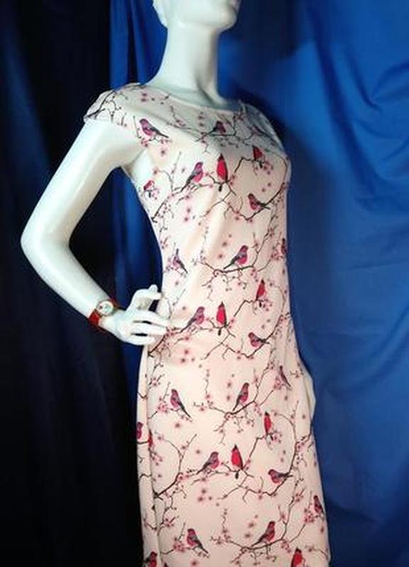 Платье прекрасно лежит на фигуре 🌹 Трикотаж отличного качества На белой стреч подкладке Цвет интересней чем на фото Изыскано бежево розовый с модным принтом Слегка спущен.плечо (плечи-49)красивый фигурный переход в линию проймы (см. Фото) Дл. Изд - 98, пог-48 (тянется Пот-41(тянется Поб, низ-52