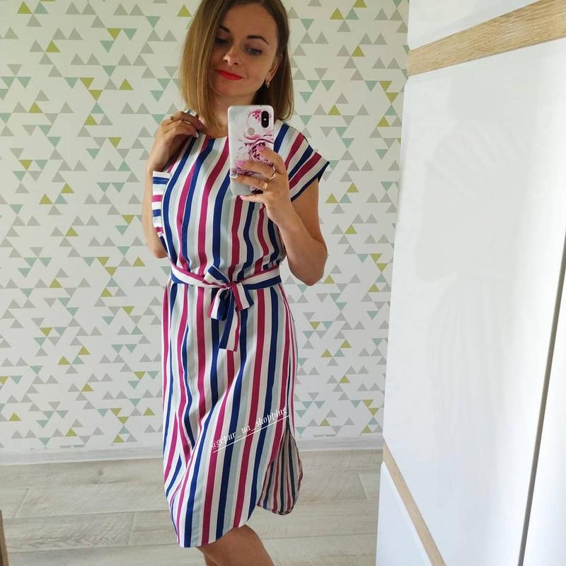 Платье миди в полоску с разрезами и поясом