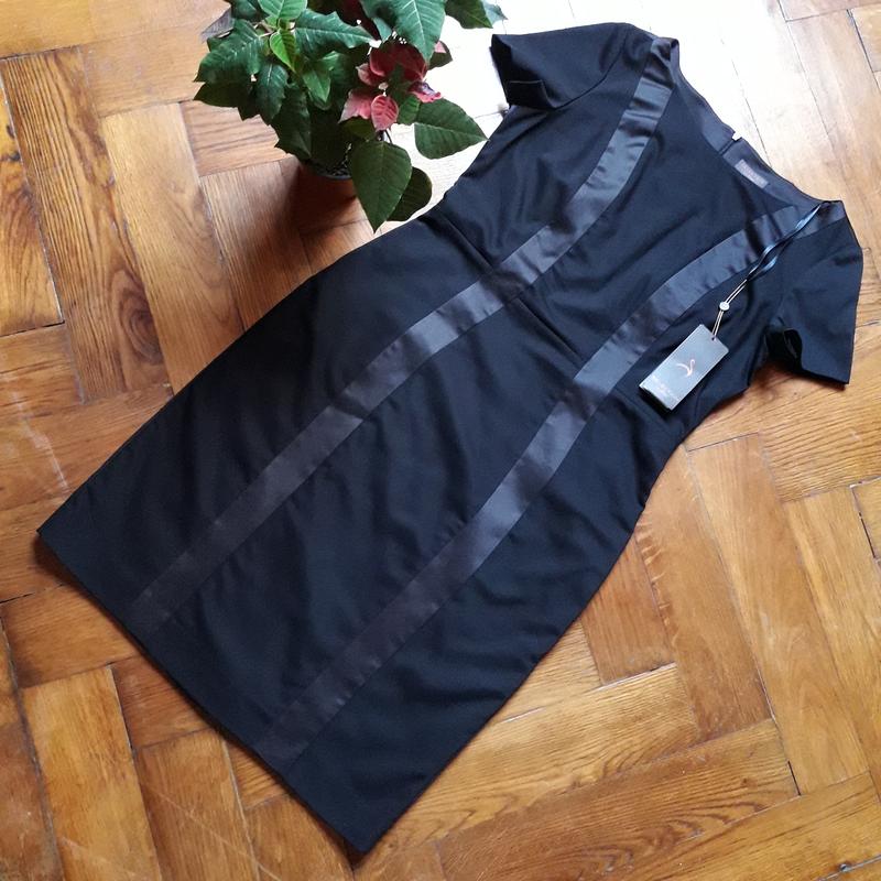 Классическое черное платье, закрывающее колено. На средний рост. Высокое качество! Полностью на подкладке. Состав ткани спереди и сзади разный. Благодаря эластану тянется. Размер: 38. Ориентируйтесь на замеры. Замеры: ПОГ 48 ПОТ 40 ПОБ 50-52 плечи 40 длина рукава 17 длина по спинке 92 Смотрите другие фирменные платья в моих объявлениях.