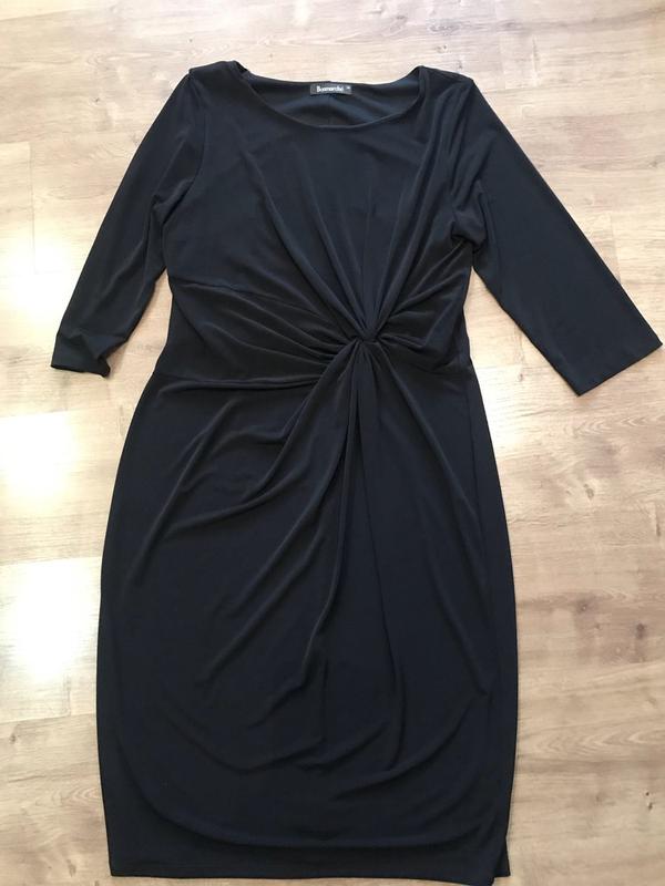 Платье р.14\42 евро. Состав: 95% полиэстер 5% эластан (плотное не просвещается). Замеры: длина 105см, ПОГ 46см ПОТ 44см ПОБ 55см. замеры сделаны без растяжки (тянется мягко 5см+). Сидит на фигуре хорошо и скрывает все нюансы за счет кроя . Дефектов нет т.к. новое ,но без бумажной бирки