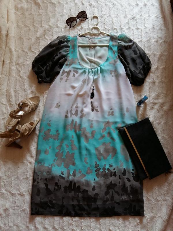 Сходить в этом платье можно и на работу, и в ресторан, и на пляж. Что удобно - есть в наличии пояс, так что при желании можно обозначить талию, а вот после ресторана можно и балахоном. Сотворено сие чудо портновского искусства украинским дизайнером Ольгой Егоровой. Размеров на бирке написано много, но по хорошему сядет на 42 европейский, 14 английский. Замеры платюшка таковы: ПОГ - 56 см, ПОТ - 59 см, ПОБ - 61 см, ДИ - 105 см. Надето было ровно три раза и поистрепалась только бирочка с размерами, а все остальное в первозданном виде.