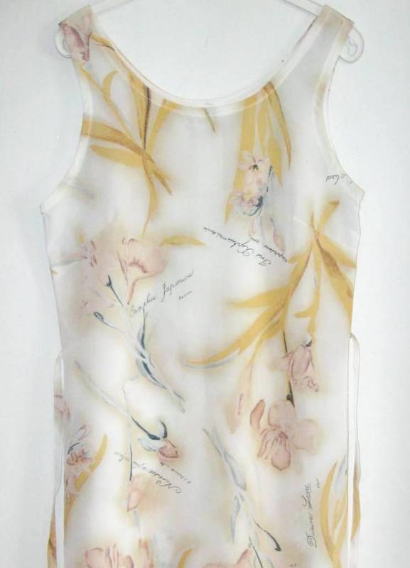 Нежнейшее, легкое платьице из синтетического крепа. Замеры: полуобхват груди - 45 см; полуобхват талии - 43 см; полуобхват бёдер - 48 см; длина от плеча - 116 см. По бокам разрезы.