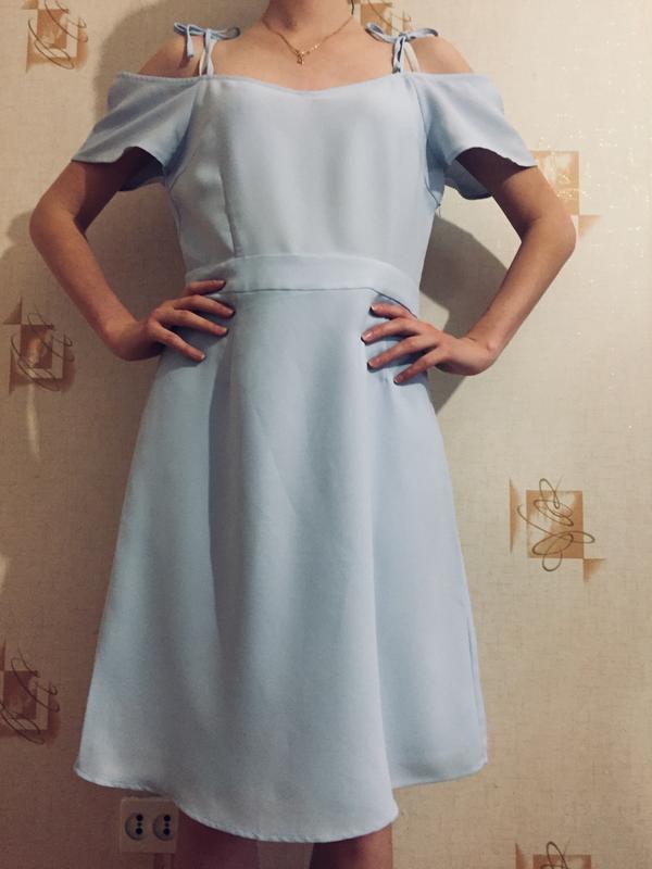 Платье нежно -голубого цвета . Длина -без брителек 87см. Длина Брителек 36см. Талия 78см. Бедра 114см. Грудь 98см.